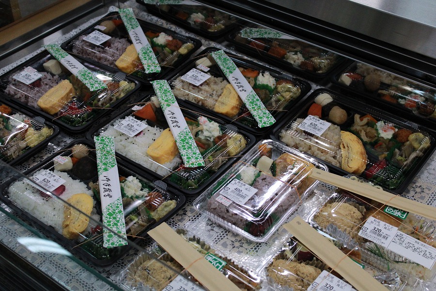 農楽園八木山で人気なのが、手づくりのお弁当です。野菜を中心に、できるだけ品数を多くし、栄養バランスを考えて一つひとつ丁寧に作っています。素朴でやさしい味つけは、「毎日でも食べたい」と多くの方に好評です。価格は480円と、今どき驚かれることも。ご飯は白ご飯と赤米ご飯の2種類から選べ、日によっては午前中に売り切れてしまうこともあるため、お早めのご来店がおすすめです。